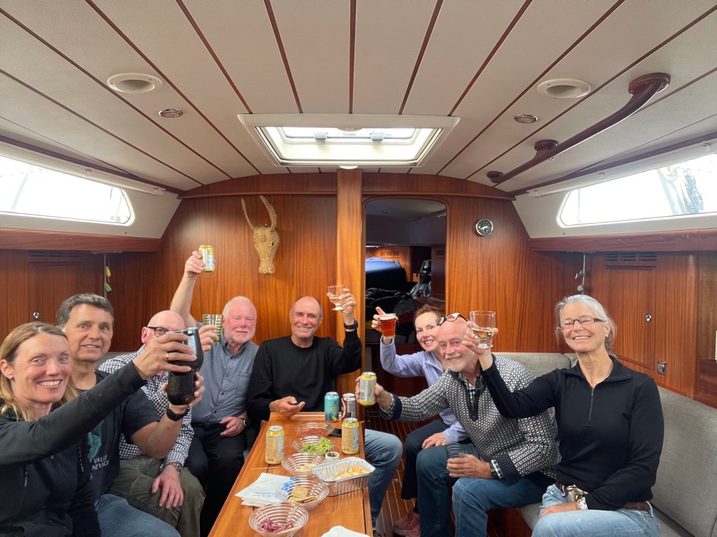 Wenn sich die Crews von mehreren Schiffen treffen werden gerne die unglaublichsten Geschichten erzählt. In St. Peter‘s Bay Marina gleich hinter der Schleuse zum Eingang in die Bras d‘Or Seen gab es eine solche Zusammenkunft. Anlass war die Geburt von Tino, meinem siebten Enkel. Wir trafen uns alle auf der Saphir: die Schotten von der „Misty Mhore“ und die Amerikaner von der „Northern Brees“.