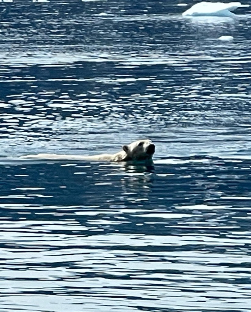 Am Ende werden wir mit einem Eisbär belohnt. Ein Anblick auf den jeder Arktis-Segler hofft. Das arme Tier hat allerdings bei den beiden Schiffen etwas Panik bekommen und schnell das Weite gesucht. Einen Tag vorher waren wir vielleicht drei Kilometer von der Stelle an Land.