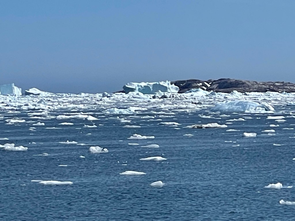Wir sind bis Narsaq durchgekommen, trotz der 3er-Eissituation. Weil das Wasser spiegelglatt war konnten wir auch die teils sehr durchsichtigen Eisschollen erkennen.