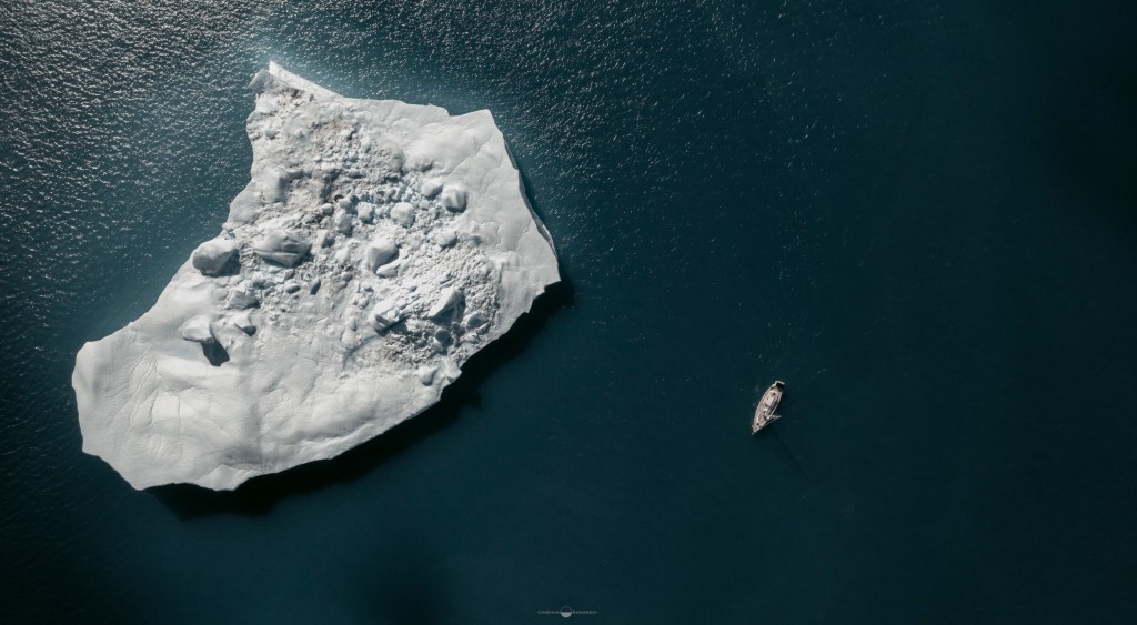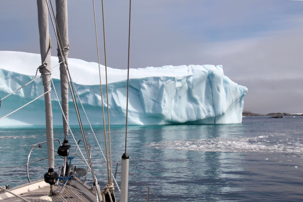 Die weitere Herausforderung ist natürlich immer noch das Wetter, jetzt aber insbesondere die Eissituation. Die Eisdichte wird auf einer Skala von 1-10 angegeben. Unser „Pleasure Craft“ kann noch „1“, ein starker Eisbrecher schafft nicht mehr als „8“. In Abhängigkeit von Wind und Strömung kann sich die Eissituation stündlich ändern. Am Ende der Fjords münden die Gletscher und kalben. Je nach Aktivität treiben dann kleine und große Eisberge den Fjord hinunter und können für uns das Befahren unmöglich machen. Auch beim Ankern möchte man nicht in den Wettbewerb mit Eisbergen kommen, die sich ziemlich penetrant mit einer Geschwindigkeit von 4 Meilen pro Tag ihren Weg bahnen.