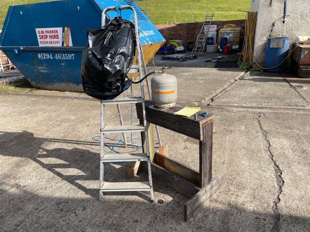 Wir haben vier eigene nichtrostende Aluflaschen zum Betrieb unseres Propangasherdes. Aber unser Gas ist alle. Das Füllen war auf der ganzen Welt kein Problem bis auf Island, wo ausschließlich isländische Flaschen mit einem isländischen Verschluss gefüllt werden und auf den Faröern, die Flaschen nur tauschen oder verkaufen, weil sie alle Flaschen zum Füllen nach Dänemark schicken. Die Britten haben es auf die Spitze getrieben: Sie geben volle Flaschen ausschließlich im Tausch gegen leere ab. Wir haben keine leeren britischen Flaschen. Man kann auch keine leeren Flaschen kaufen. Es gibt einfach keine. Ein Rat war, sie auf dem Schrottplatz zu suchen…