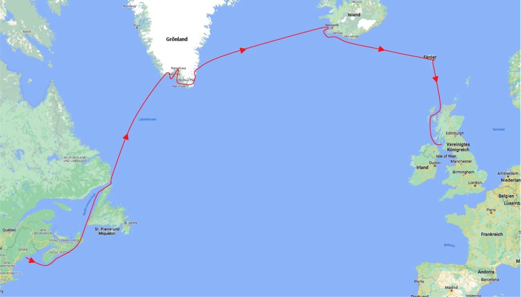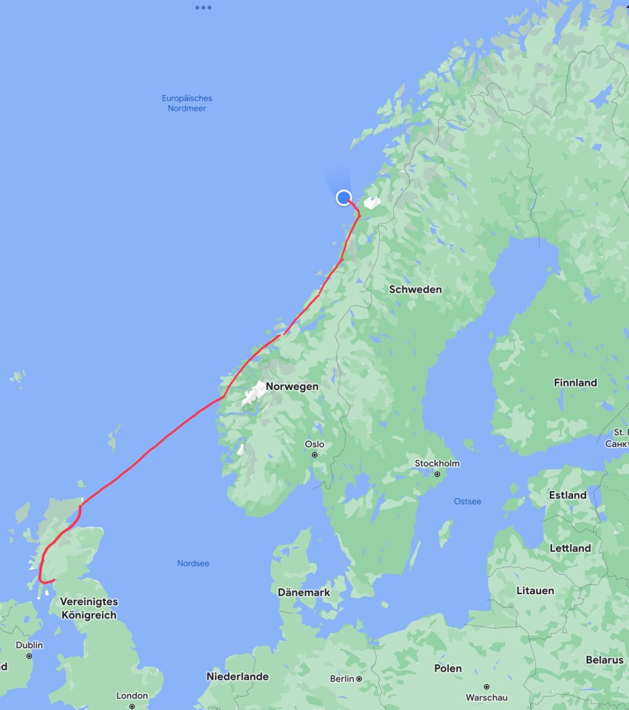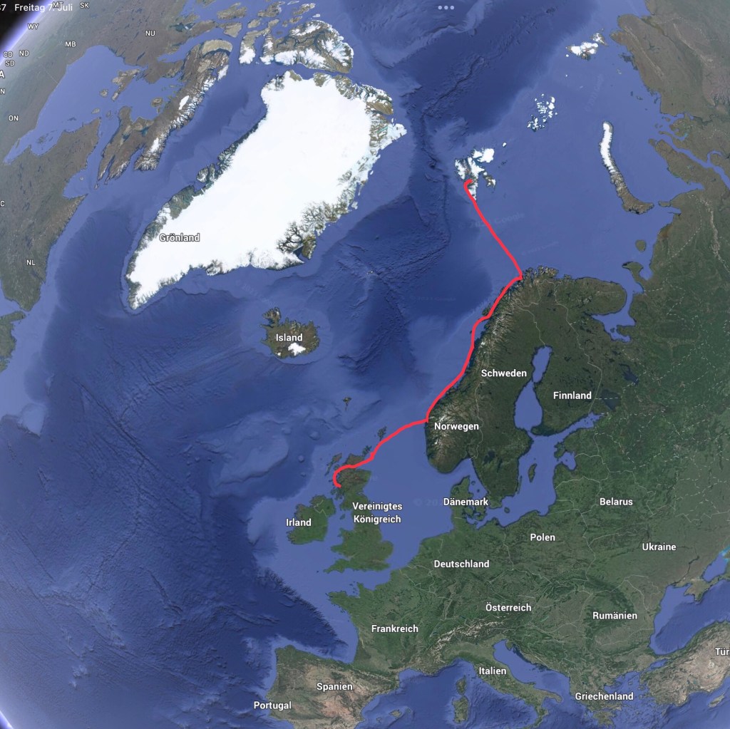 Seit Schottland haben wir 1.844 nautische Meilen zurückgelegt. Das sind ca. 3.320 km.