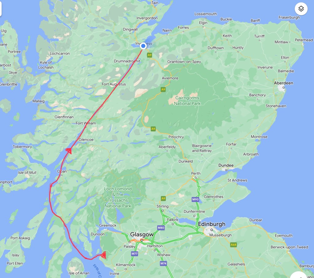 Den letzten Abend vor dem Rückflug verbringen wir in Glasgow. WOW! Großstadt! Das gab es seit Halifax nicht mehr. Was für ein Trubel und die vielen Menschen und Autos. Willkommen zurück.