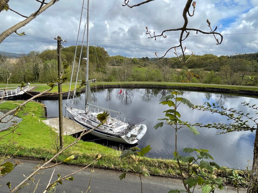 Am 3. Mai sind wir in See gestochen. Das klingt nach viel, trifft den Anfang der Reise aber überhaupt nicht. Ein paar Stunden motorten wir auf einem schottischen Fjord bis zum Crinan Canal. Dieser durchschneidet die Halbinsel Kintyre (ja, die von dem Dudelsackgeplärre) an ihrer Basis und erspart einem die sehr aufregende Umrundung derselben. An ihrer Spitze kocht das Wasser aufgrund der heftigen Strömungen. Der Kanal wurde bereits 1801 gebaut. Die 13 Schleusen muss man selbst bedienen. Zwei Nächte haben wir wegen der Schwerarbeit im Tiefschlaf im Kanal verbracht.