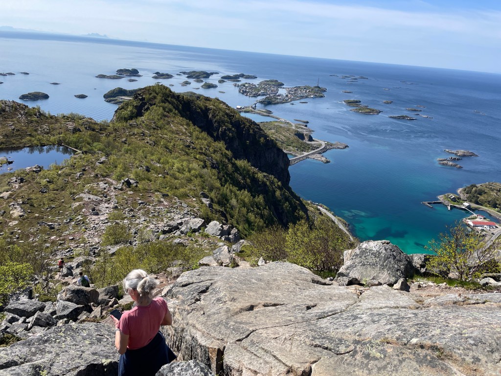 Besonders schön waren die Lofoten mit ihren schroffen Bergen. Es gab viele Gelegenheiten zu wunderbaren Wanderungen. Beeindruckend sind die von eingeflogenen Sherpas (ja, die aus Nepal) gebauten Stufen die Berge hinauf. Die Treppe bei dem berühmten Reinebringen hat fast 2.000 Stufen. Die Aussichten sind gigantisch, wenn man einmal oben angekommen ist.